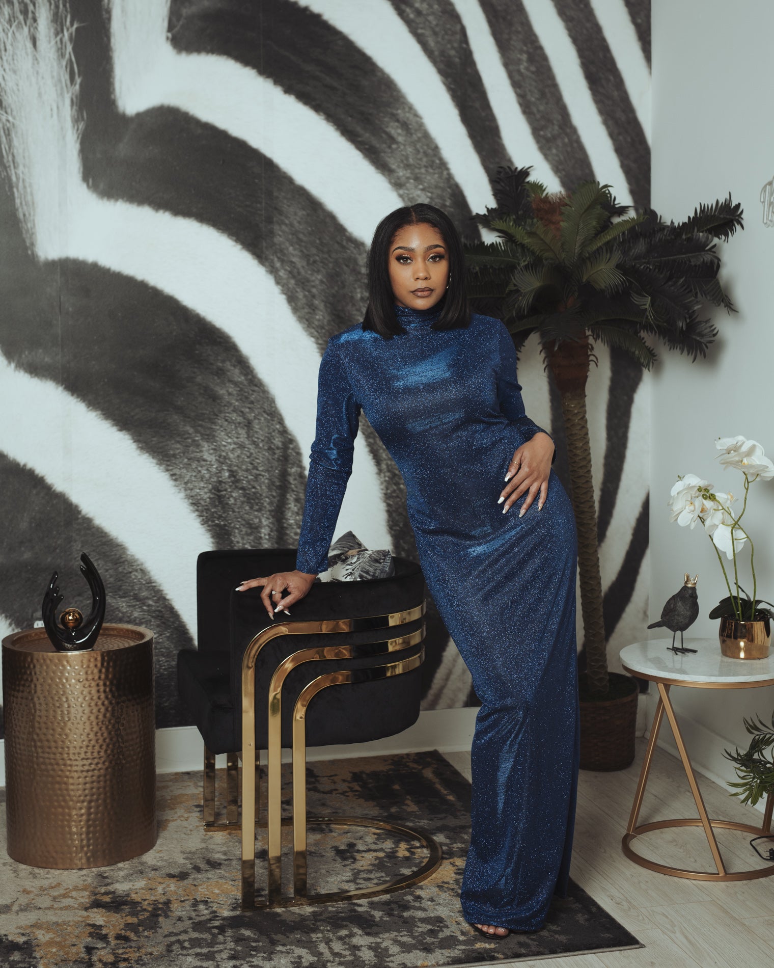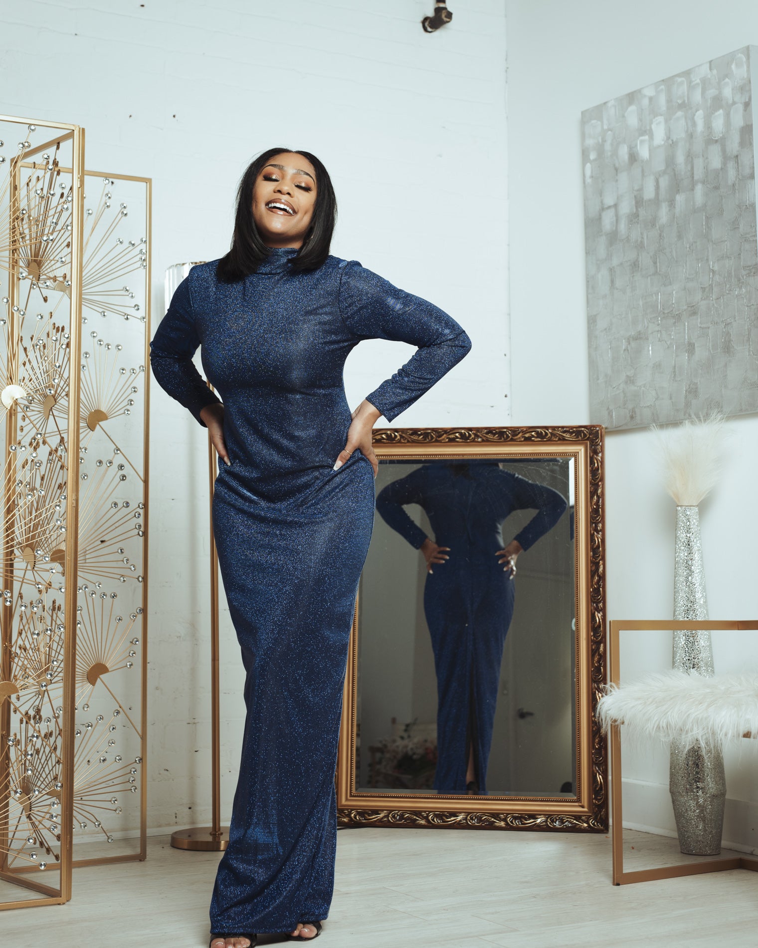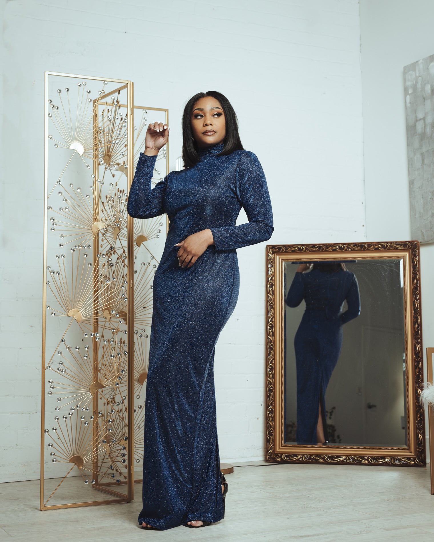 This is a custom Chuck B. Moore piece. Blue shimmer, floor length gown.